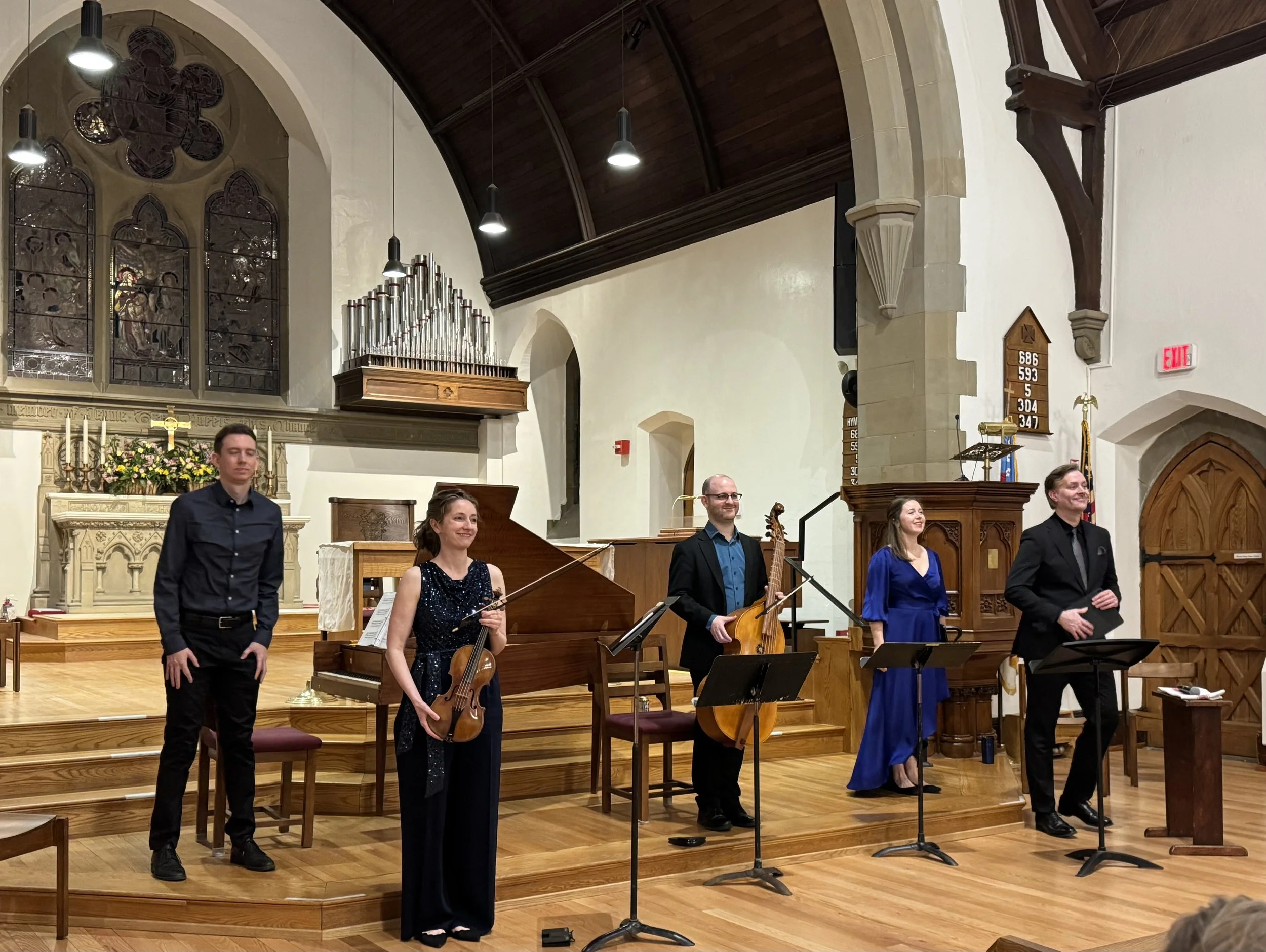In January, Upper Valley Baroque performed the complete Brandenburg Concertos in Lebanon (LOH), Randolph (Chandler), and Rutland (Grace Church) to large and enthusiastic audiences. Each of the six Concertos uses a different configuration of instruments. Photo Credits (top and bottom left): Lars Blackmore